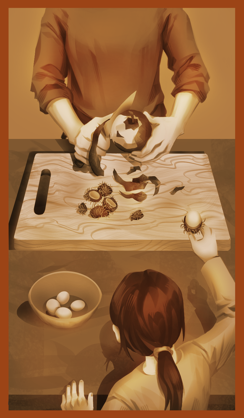 Mai Nguyen is a graduate from Emily Carr University of Art + Design and is an illustrator based in Vancouver, BC who is focusing on visual development and concept art. She is inspired by her interests in the natural and fantastical, and from her favourite pastimes such as tabletop games and video games. With tabletop games being a hobby, she is an avid fan of trading cards and board games, which made her become a big collector of these things. In her practice, she aims to create narratives through environmental pieces and character design about the connection of people, animals and our natural surroundings.